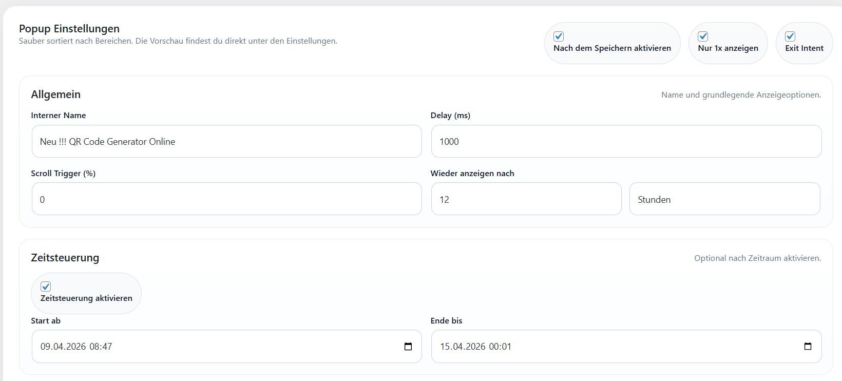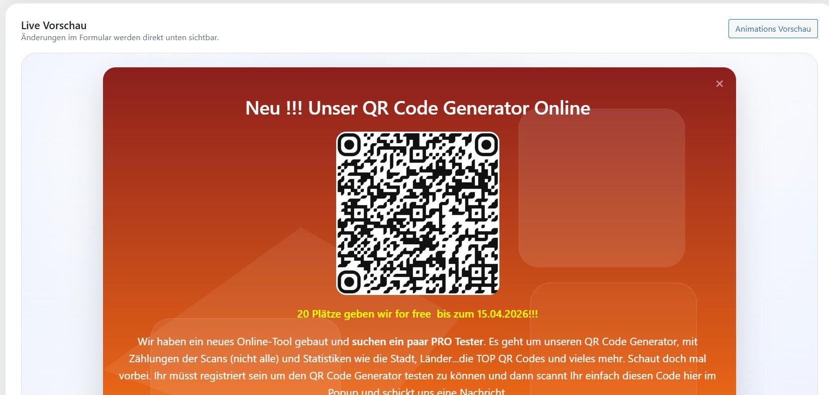 • Shortcodes direkt im Popup nutzbar