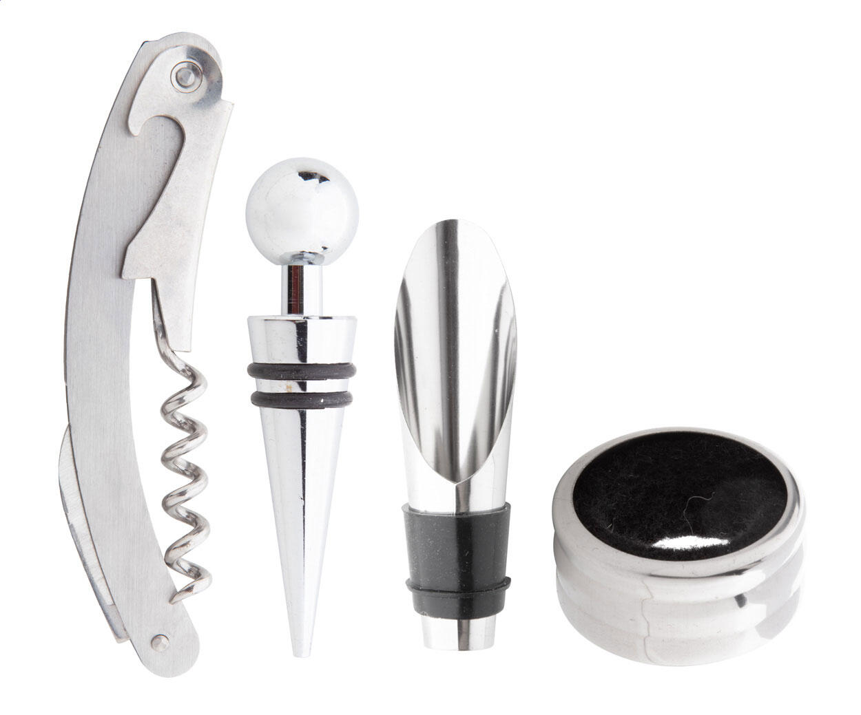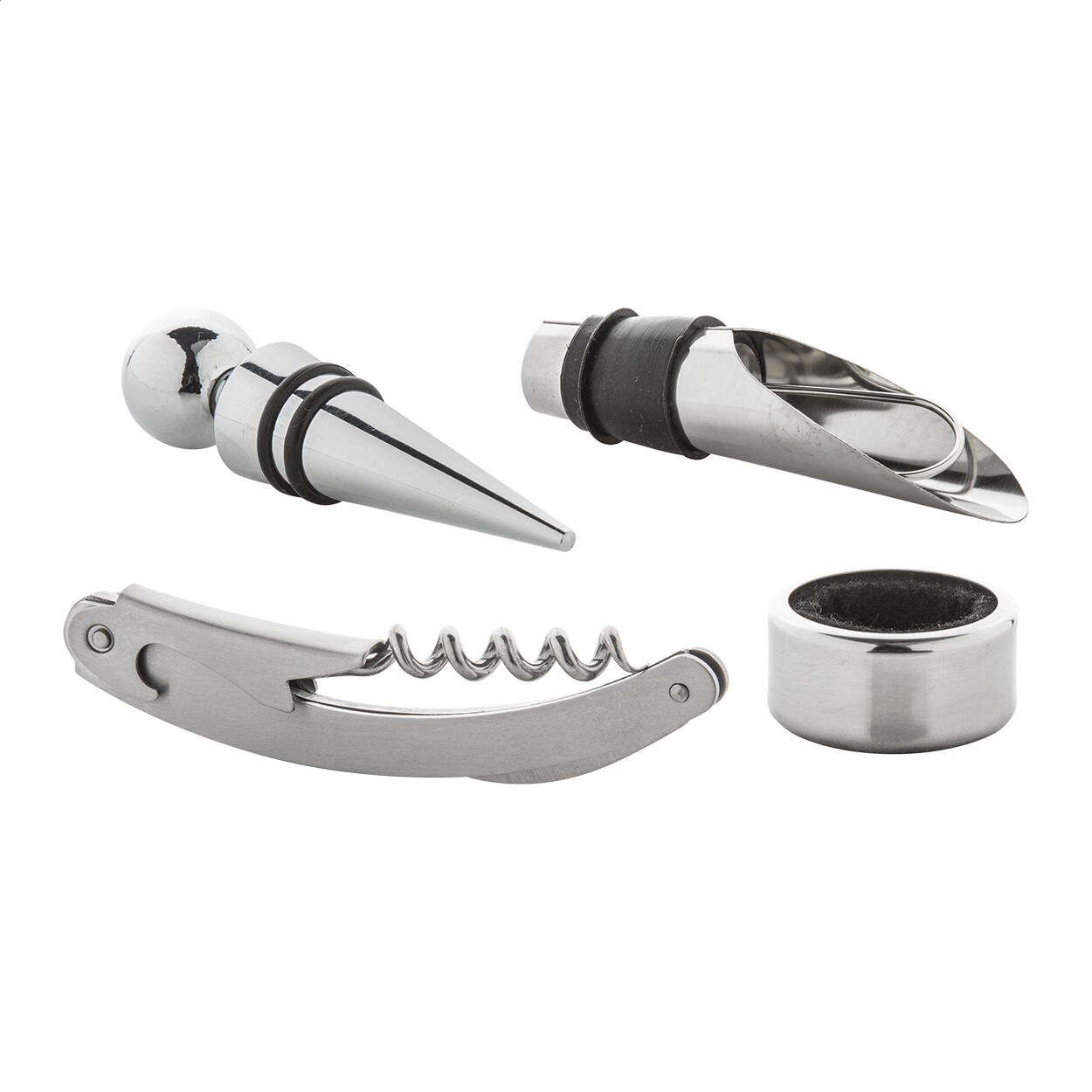 Weinset mit 4 Accessoires., in schwarzer Geschenkbox.